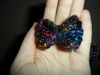 I decided to make headbands for my teddy bear using this pattern for the bow but experimenting with the straps - either crochet chains or bands with little ear-holes: